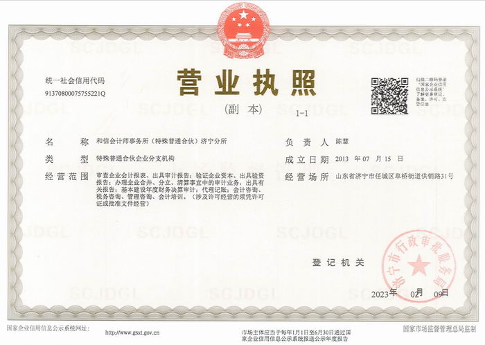 和信会计师事务所济宁分所 和信会计师事务所(特殊普通合伙)济宁...